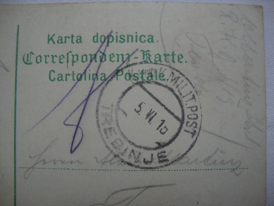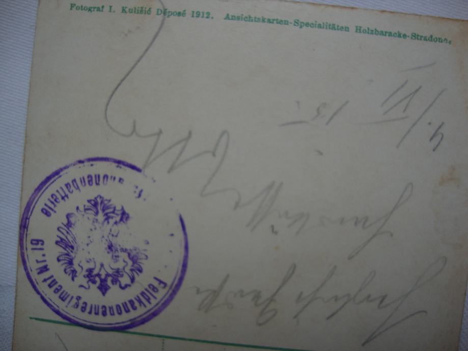 Dopisnica sa vojnim žigom Kukmilitary post i Feld ljubičastim putovala 1915. godine