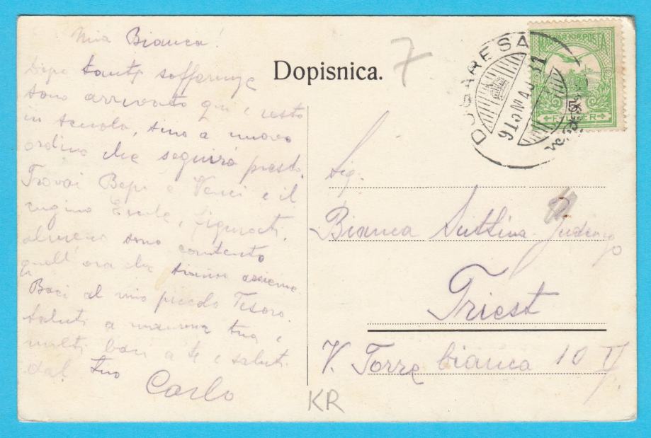 Prekrasna stara austro-ugarska razglednica Duge Rese (Dugaresa - Hrvatska), putovala davne 1910. godine u Trst.