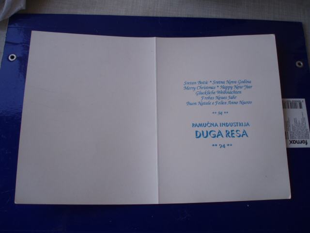 Duga Resa - Pamučna industrija -Čestitka za Božić i Novu godinu 1994.