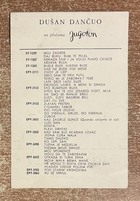 DUŠAN DANČUO - PP KARTICA JUGOTONA SA AUTOGRAMOM