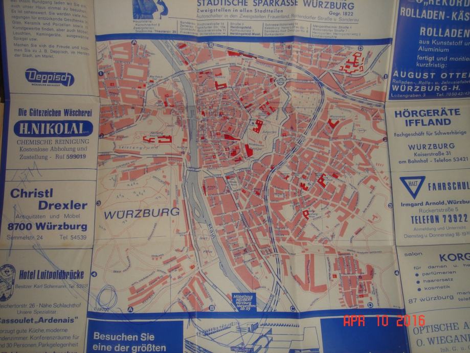 džepni plan grada Wurzburga iz 60 -tih 11x8 cm