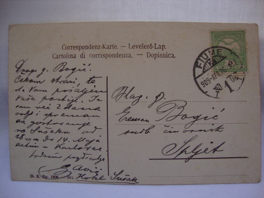 Stara dopisnica Rijeke putovala za Split 1906. godine - rijetko sa zaprežnim kolima