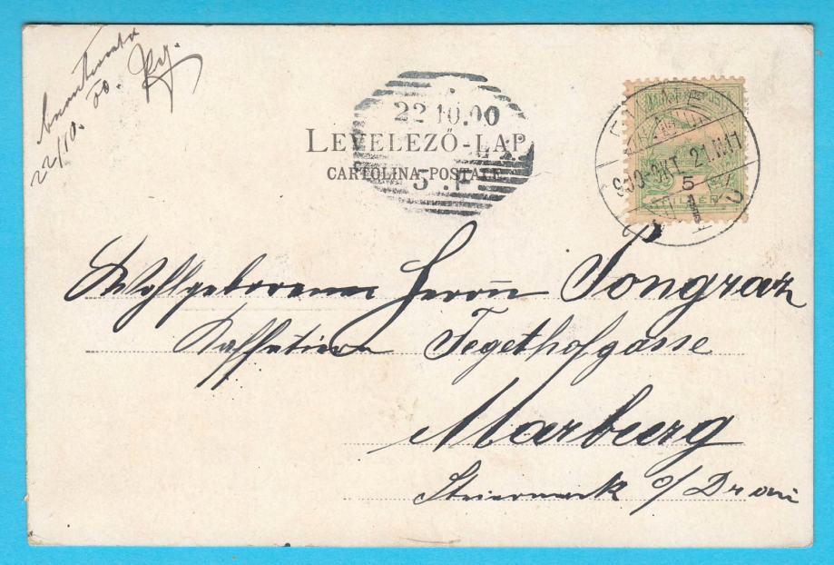 Prekrasna stara razglednica Rijeke, putovala 1900-te godine u Marburg (Maribor - Slovenija).