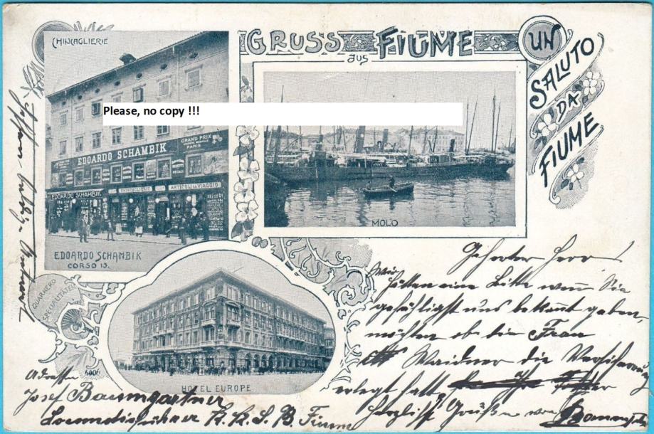 FIUME (RIJEKA) Dućan Edoardo Schambik & Hotel Europe - Putovala 1900.g