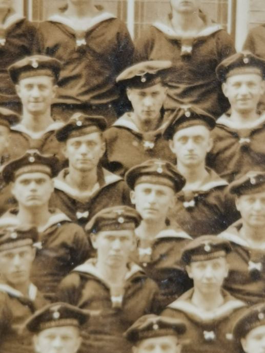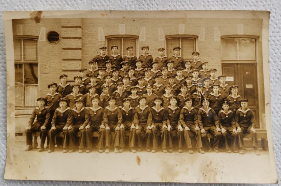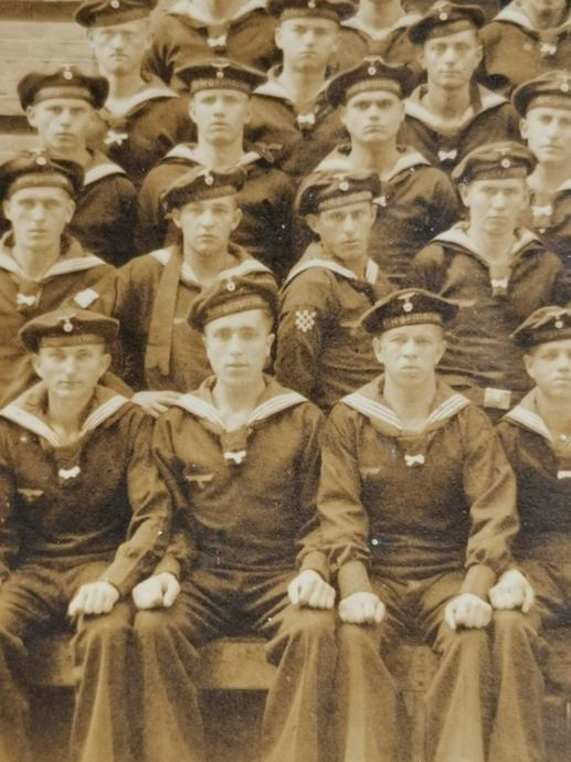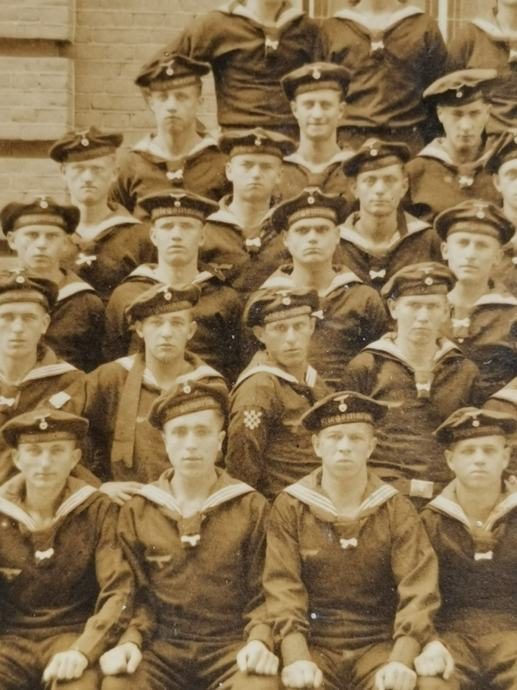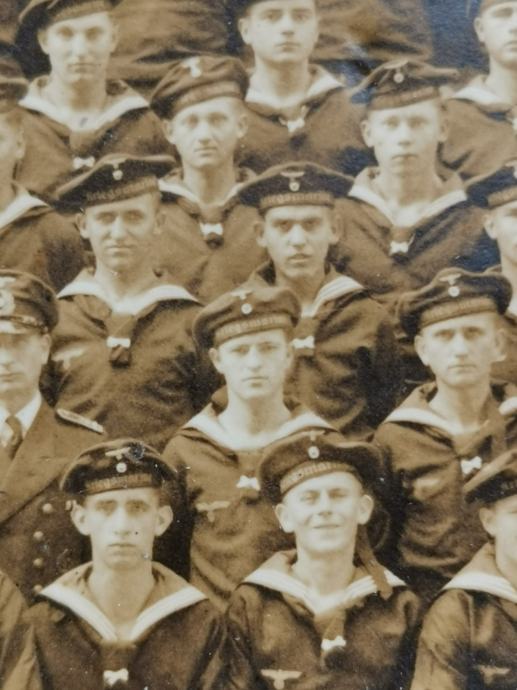 FOTOGRAFIJA VOJNA NDH...skupna fotografija pripadnika "HRVATSKE POMORSKE LEGIJE"-23. FLOTILA LOVACA PODMORNICA (23.U-JAGDFLOTTILLE) u sastavu KRIEGSMARINE,pod zapovjedništvom kapetana korvete Josipa Sesseglia, koja je raspolagala sa 6 ratnih brodova UJ 2301-UJ 2306 i koja je za vrijeme borbenog djelovanja potopila 3 sovjetske podmornice, najmanje jednu oštetila, oborila 12 ruskih zrakoplova, pri čemu je u borbenim djelovanjima smrtno stradalo 39 pripadnika Pomorske legije. veličina 14x9 CM