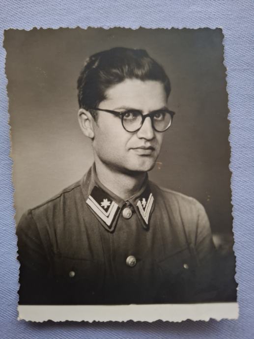Mladi časnik u uniformi sa trolistom na kragni.