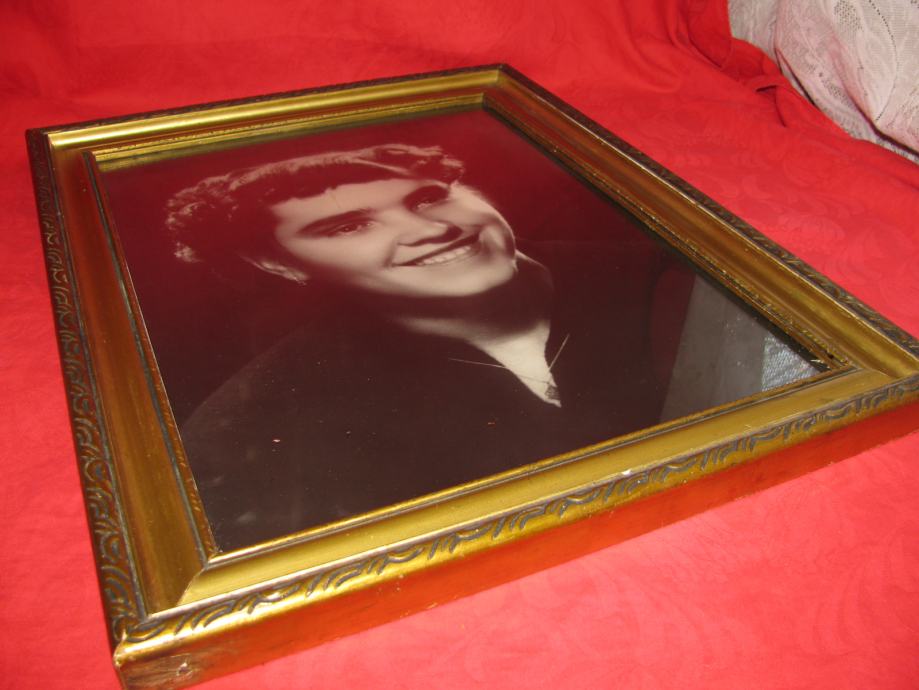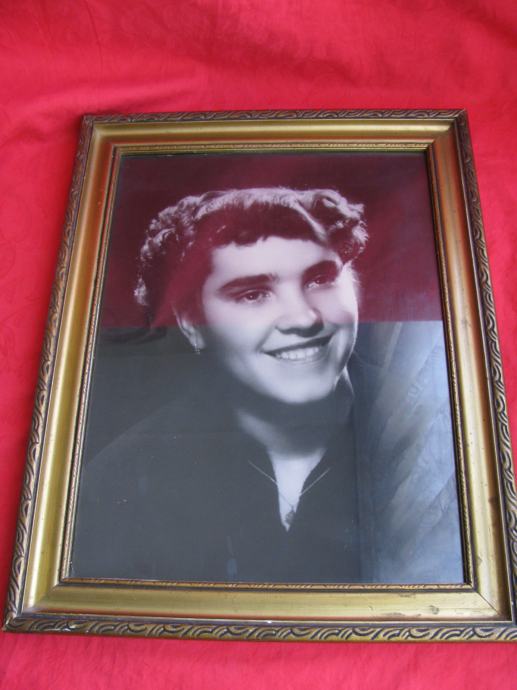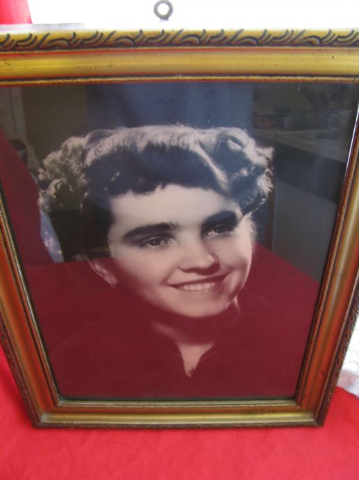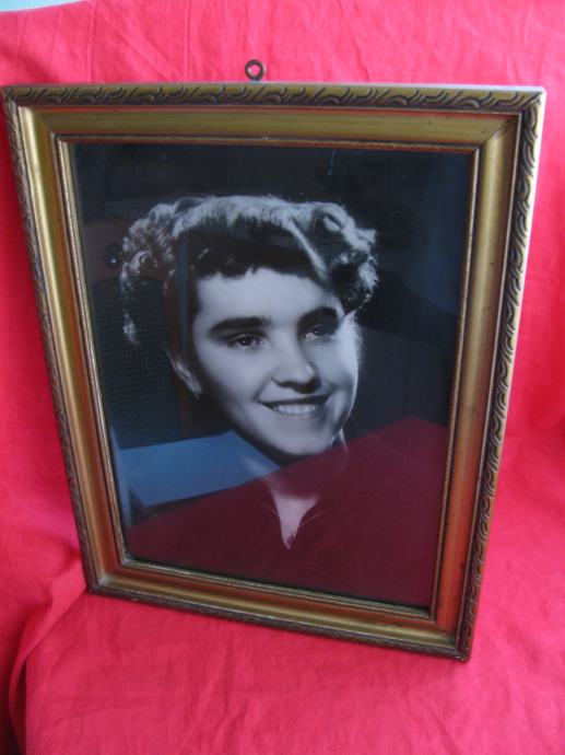 Stara ostakljena slika u drvenom okviru.