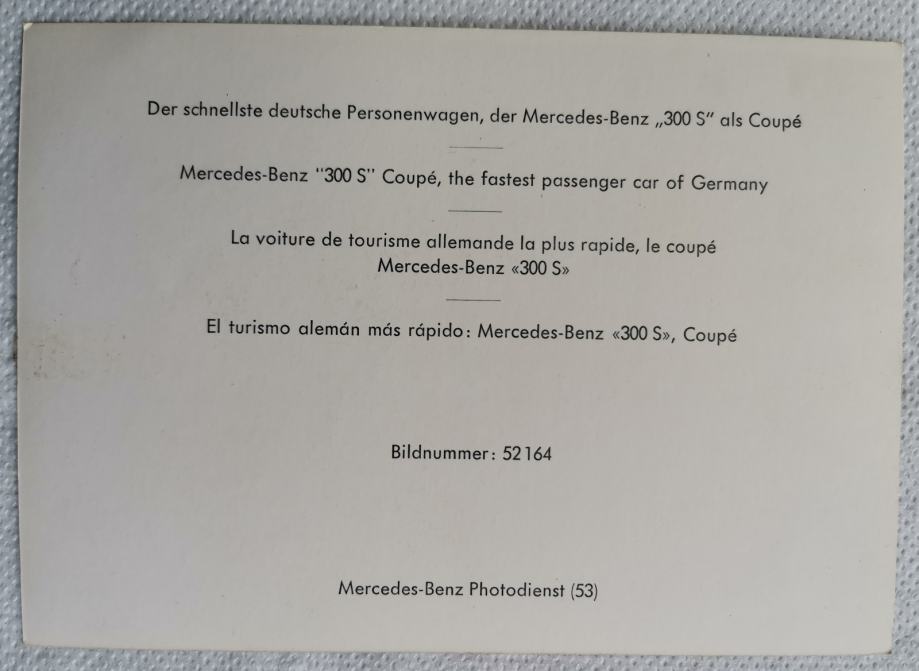 FOTOGRAFIJA "MERCEDES BENZ" 300 S coupe