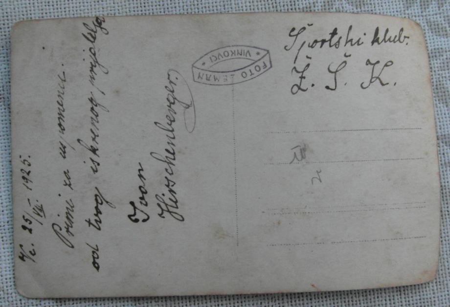 ŽŠK je jedan d naših najstarijih kubova koji se naknadno spojio sa Cibaliom u Željezničarski građanski športski klub Cibalia. Fotografija ima posvetu Ivanu Hirschenbergeru jednom od osnivača Zagrebačkog nogometnog saveza.