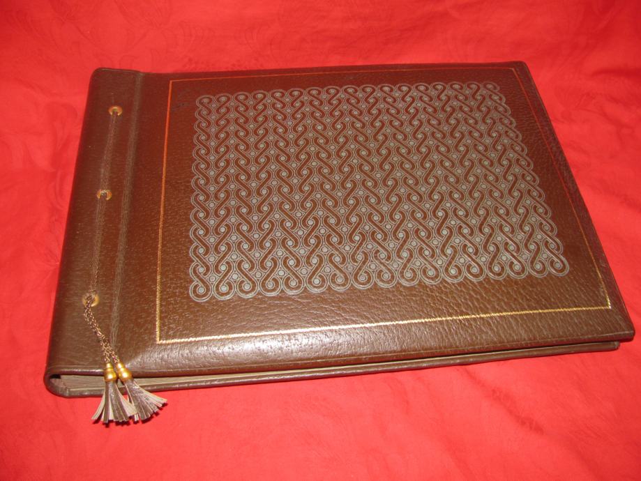 Album je stari, debljih korica, neznam dali je koža ili nešto slično.