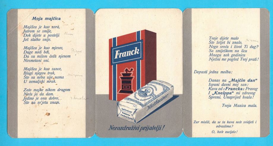 FRANCK KAVA (Zagreb) vrlo lijepa stara reklamna brošura * coffee cafe