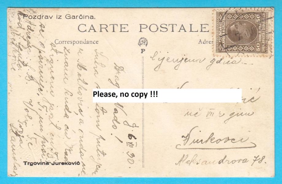 GARČIN (Slavonski Brod) razglednica putovala 1930.* Trgovina Jureković
