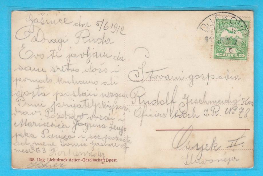Stara austro-ugarska razglednica Gašinaca kod Đakova, putovala 1912. godine u Osijek.