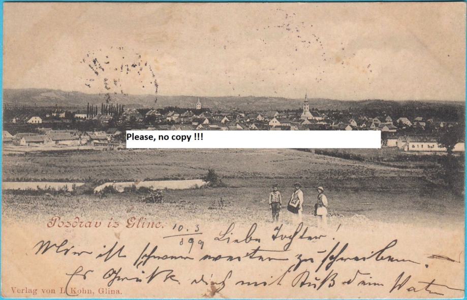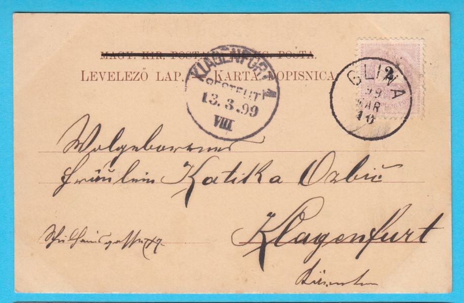 Stara austro-ugarska razglednica Gline, putovala davne 1899. godine u Klagenfurt (Austrija).