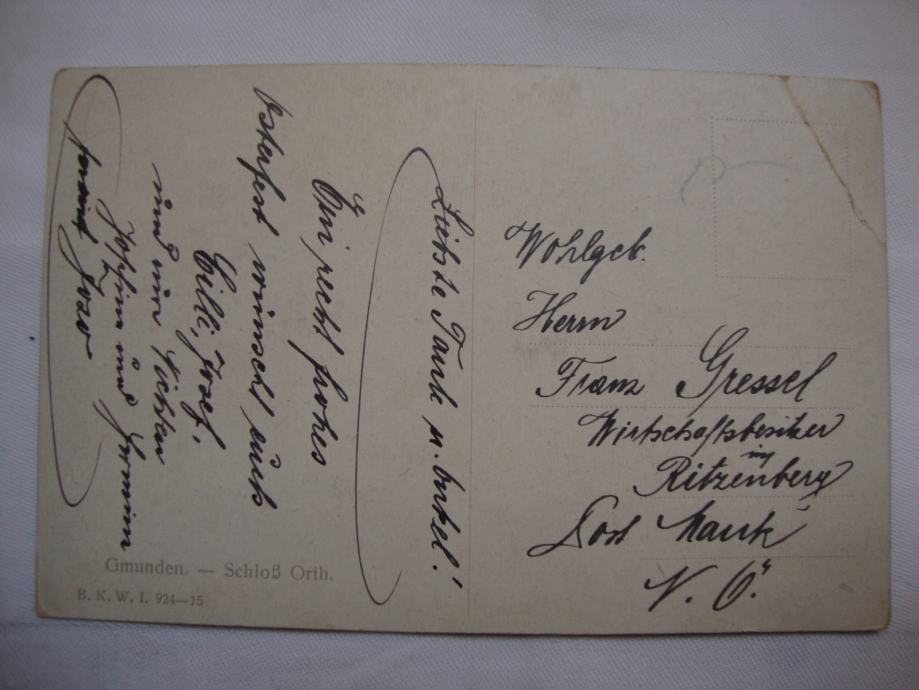GMUNDEN SCHLOSS ORTH. -B-K.W.I.924-15 old postcard -razglednica
