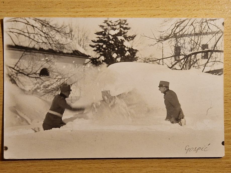 Vojnici se grudaju u snijegu Gospić Lika Foto Atelje Verson RPPC