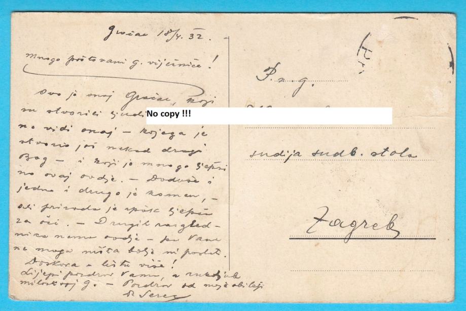 Zanimljiva stara predratna razglednica Gračaca, putovala 1932. godine u Zageb.