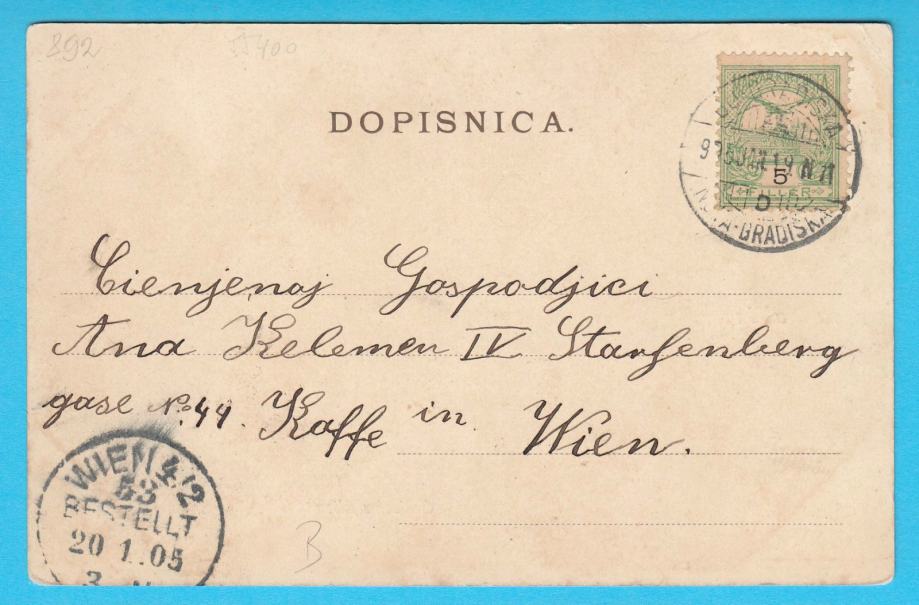 Stara austro-ugarska razglednica Nove Gradiške, putovala davne 1905. godine u Beč.