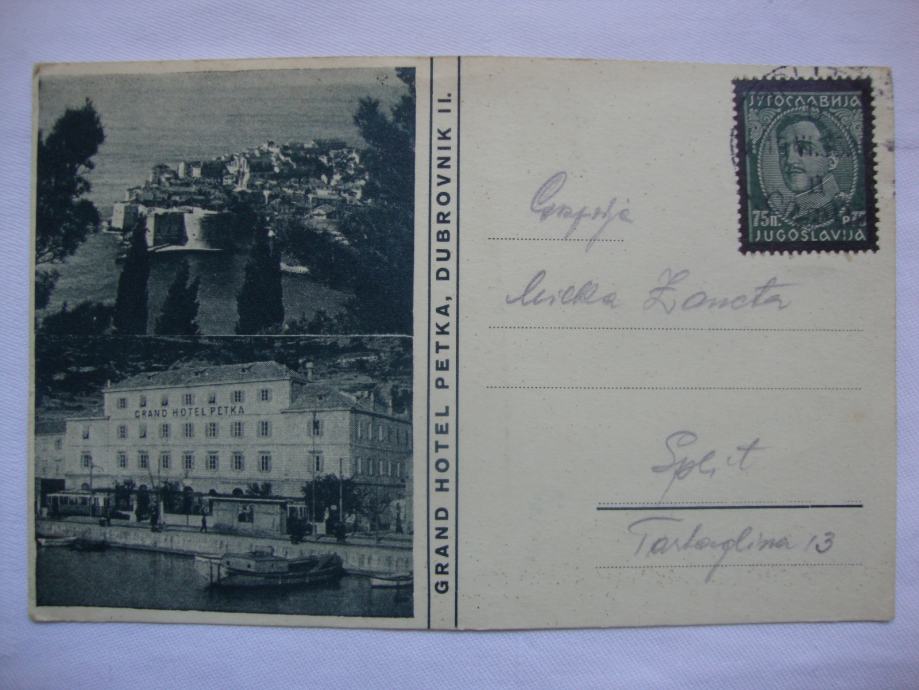 Dopisnica Dubrovnika sa motivom hotela Petka putovla 1935. godine za Split
