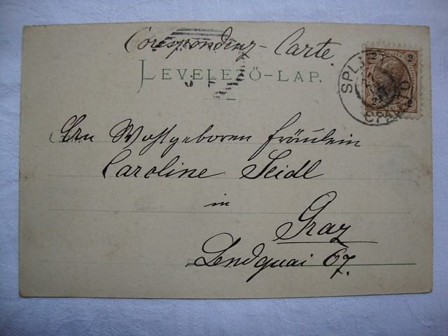 Dopisnica putovala Beč - Split 19. st. početak 20.