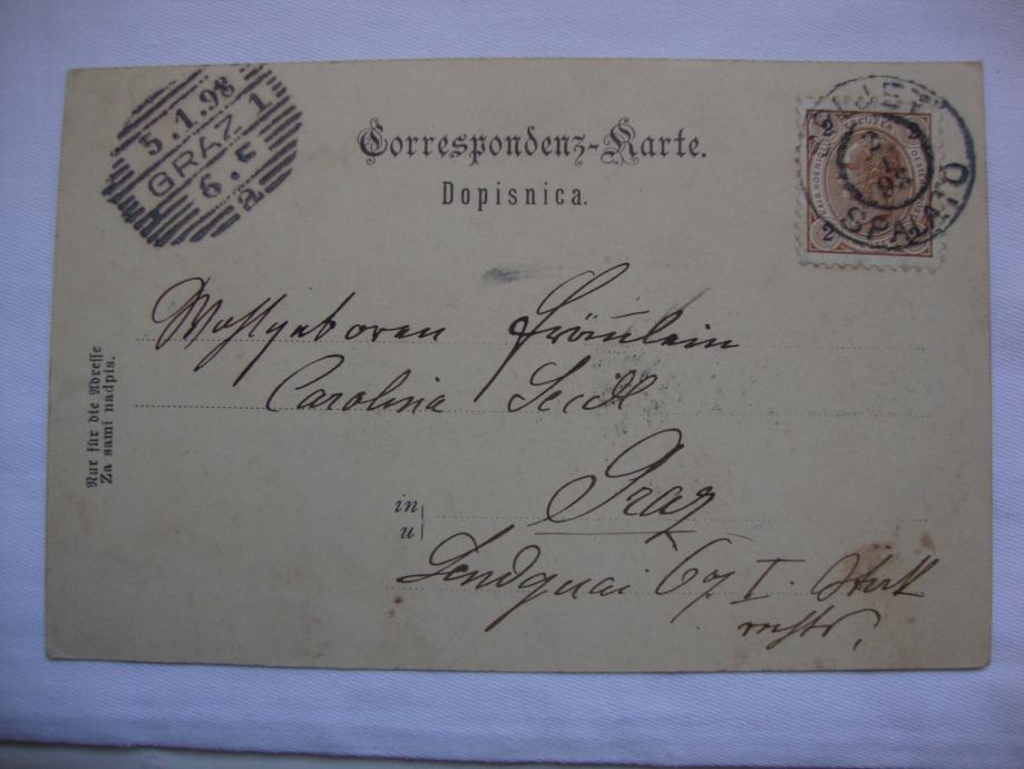 Dopisnica LJUBLJANE -Laibach iz 19. stoljeća Putovala 1898. godine iz Splita za Graz