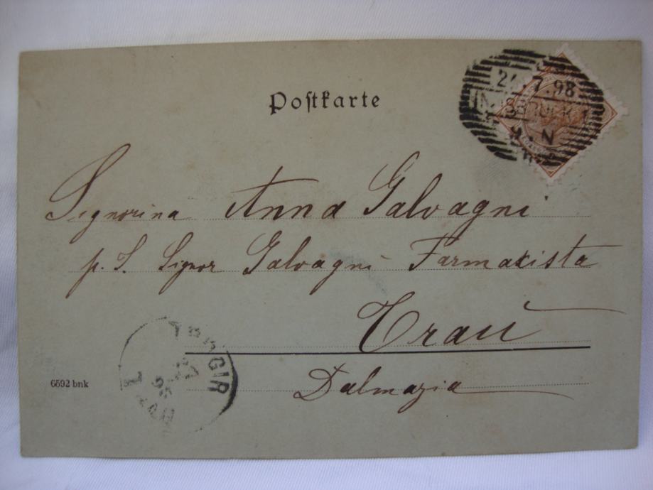 Stra grusova dopisnica Lindau luka sa parobrodom - putovala za Trogir - Split 1898. godine