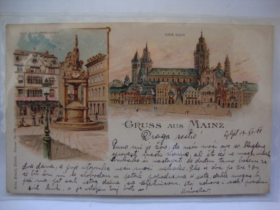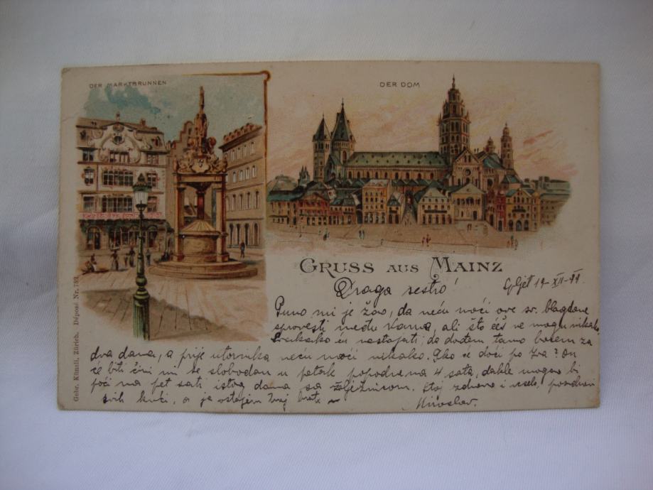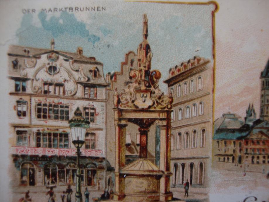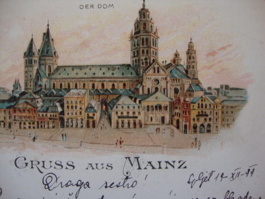 GRUSS aus MAINZ , DER DOM DER,DER MARKTBRUNEN,1899.Dopisnica putovala