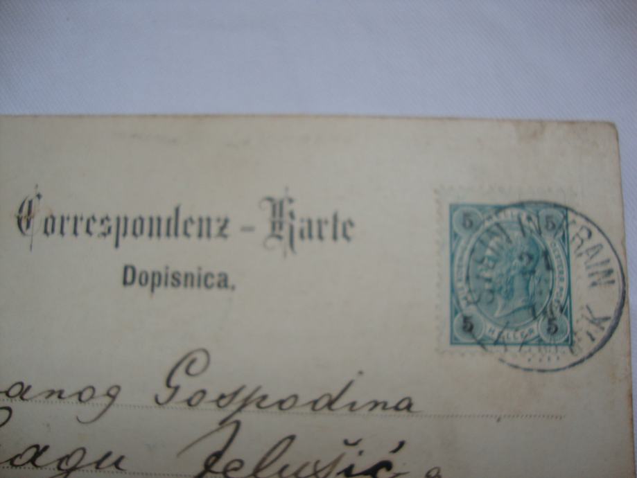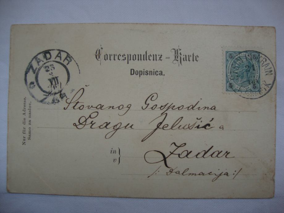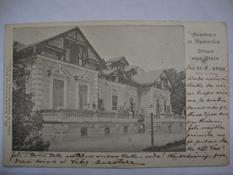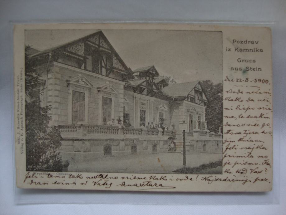 Stara Grussova razglednica Kamnik u Sloveniji putovala iz Kamnik - Zadar 1900. godine ugladenom fermaceutu doktoru