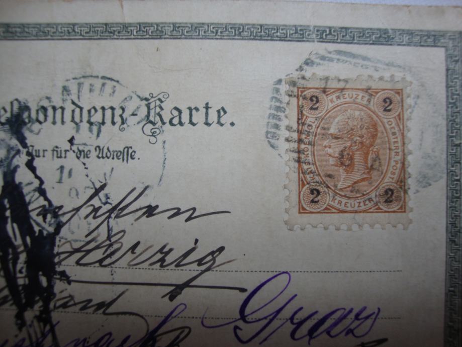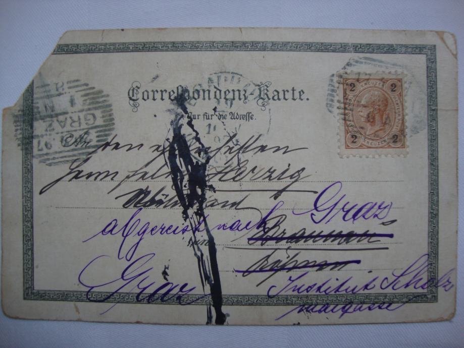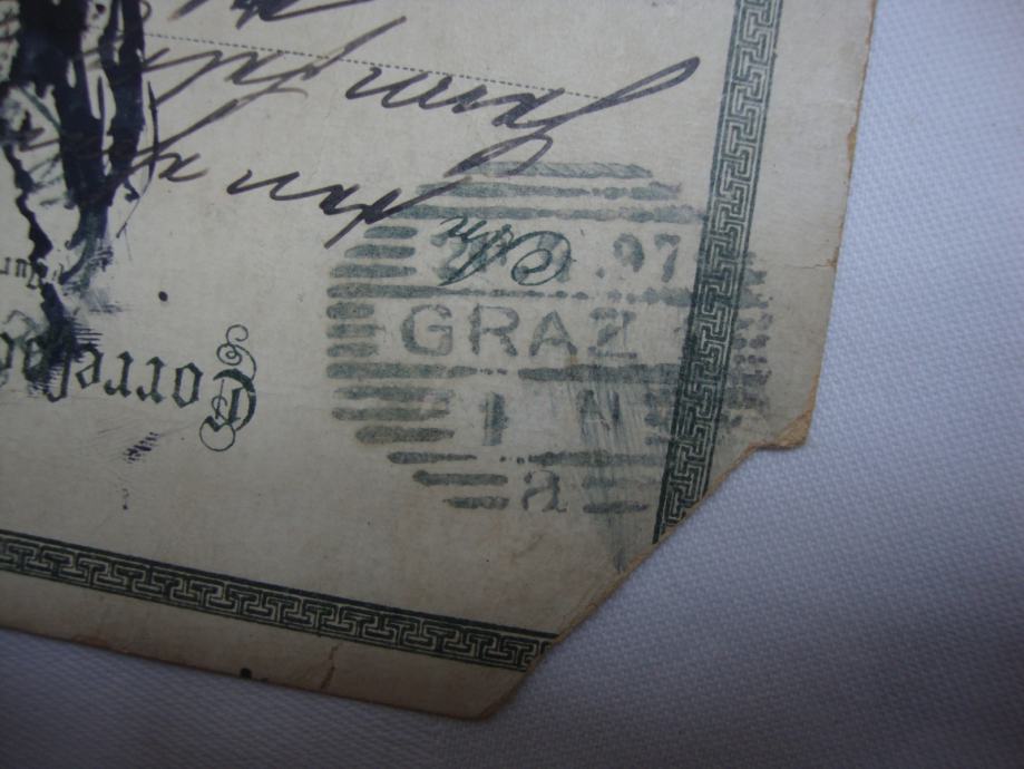 Stara dopisnica putovala za Graz sve u vrlo dobrom stanju osim okrnutog dijela vidljivi svi žigovi i markica