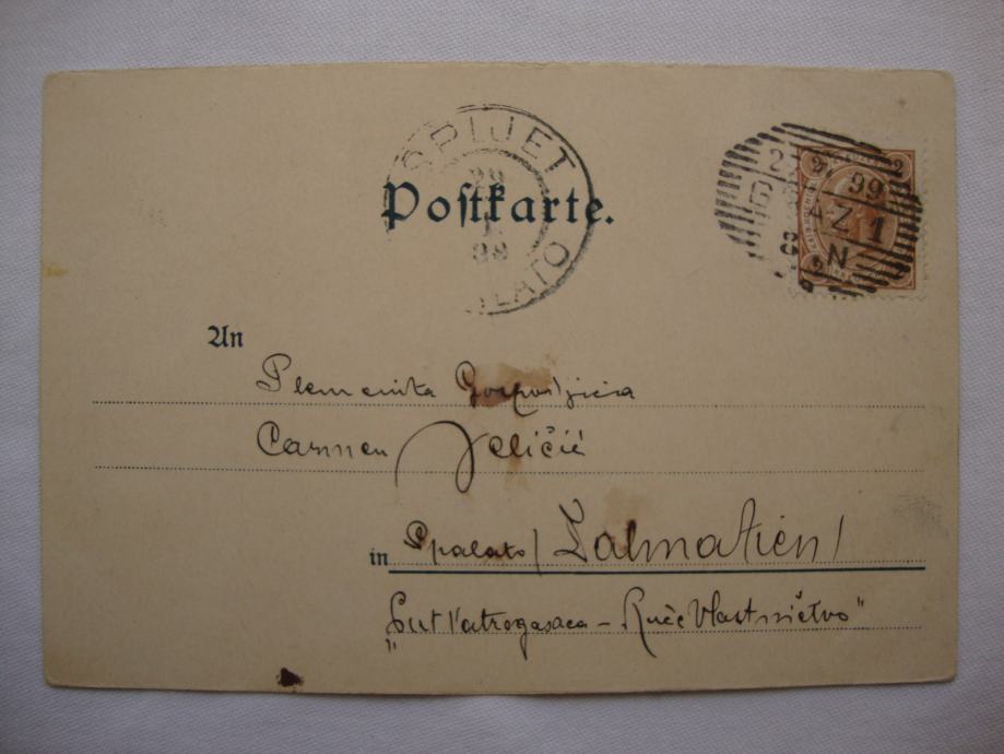 Stara njemačka umjetnička grussova dopisnica putovala 1899. godine iz GRAZA za SPLJET