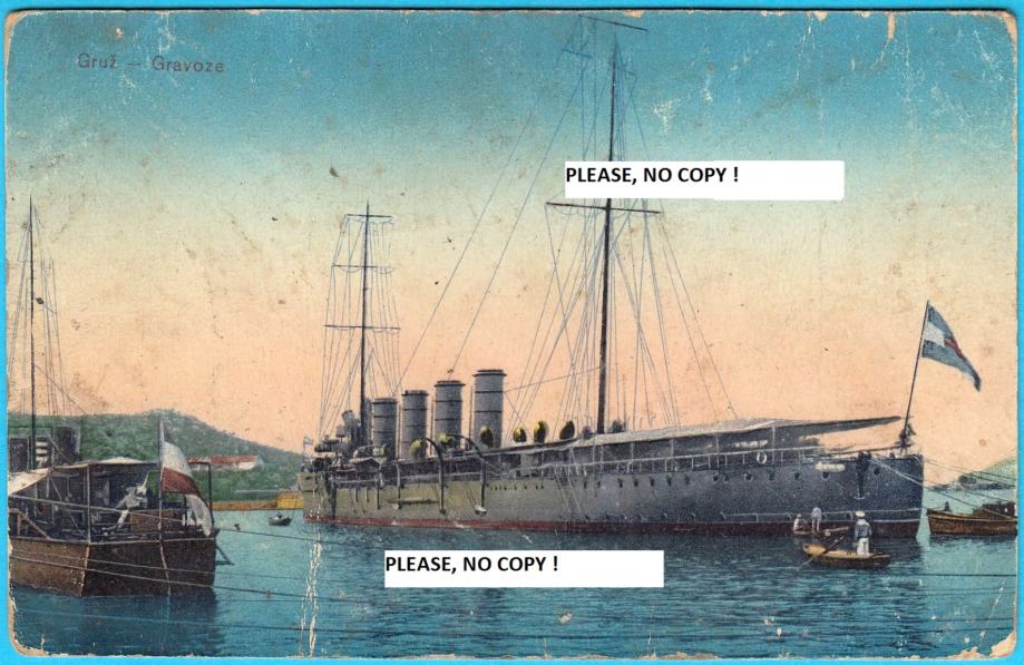 GRUŽ (Dubrovnik) Austro-ugarski ratni brod u luci * By: Ljubo Tošović