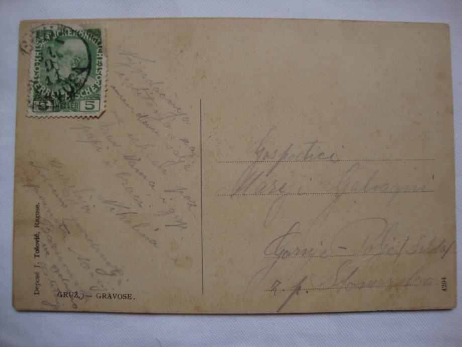 J.TOŠOVIĆ,izdavać , RAGUSE 4294 Dopisnica putovala za Gornje Polje (otok Šolta) 1911.godine očuvano