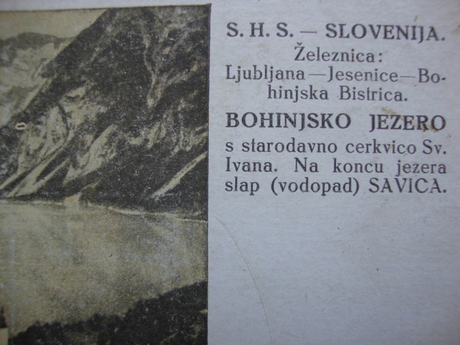 Dopisnica S.H.S.-Slovenija ,Bohinjsko jezero iz 1919. godine - tiskara Ljubljana