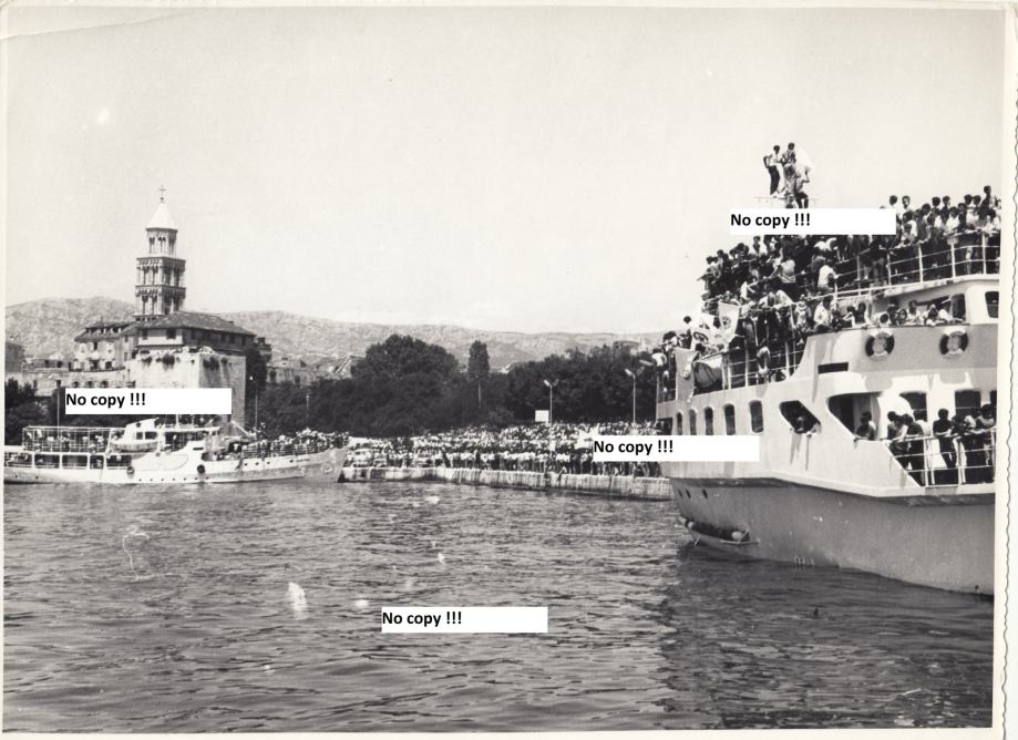Stara originalna fotografija Hajduka sa prekrasnom scenom dočeka Hajduka u Splitskoj luci nakon velikog uspjeha i dugog posta, osvajanje Prvenstva bivše države u sezoni 1970/1971.
