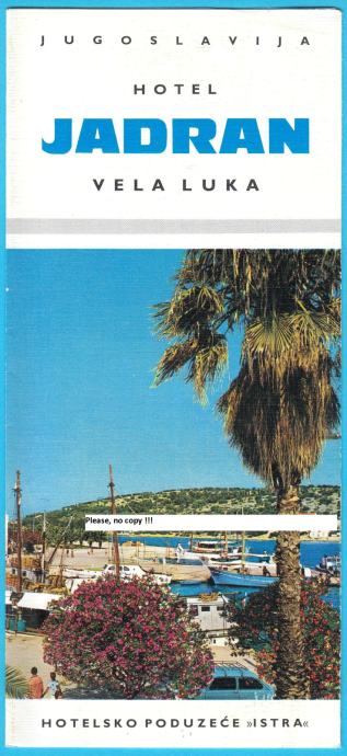 HOTEL JADRAN - VELA LUKA (Korčula) ex Yu turistički prospekt brošura
