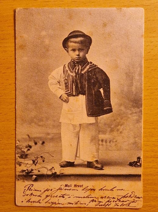 Hrvatska domoljubna stara razglednica Mali Hrvat Nošnja cca 1900