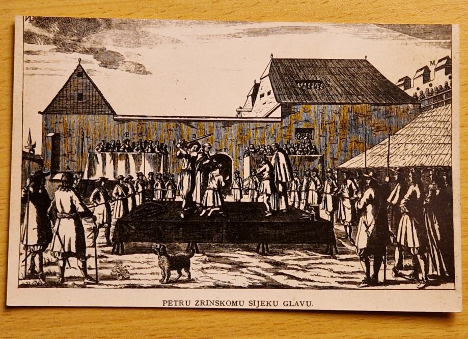 Hrvatska stara domoljubna razglednica Petru Zrinskom sijeku glavu