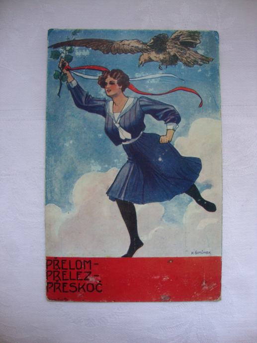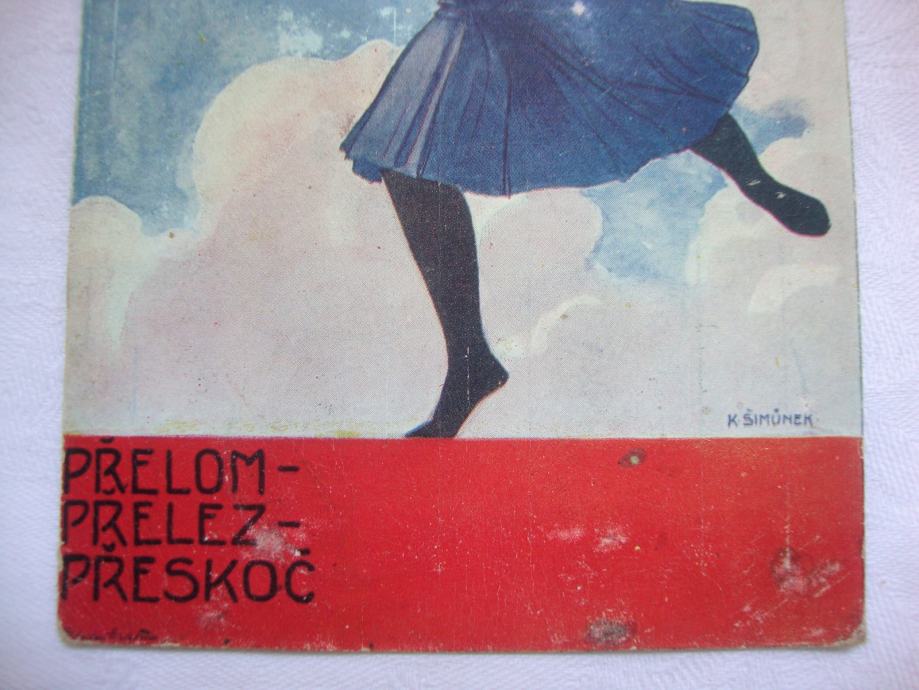 Krasna kolekcionarska dopisnica ručno doradio umjetnik Karel Šimunek potpisano . putovala 1909. godine za Split