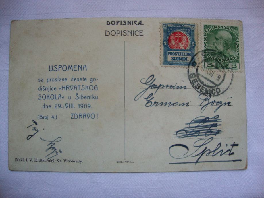 HRVATSKI SOKOL -ŠIBENIK - DOPISNICA 1909.god. Karel Šimunek