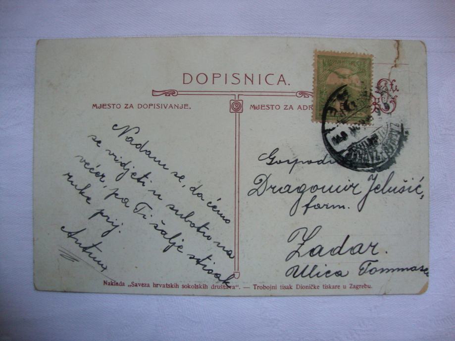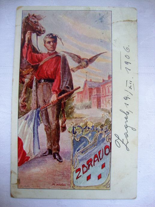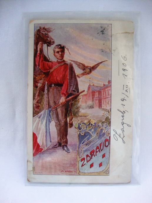 HRVATSKI SVESOKOLSKI SLET - ZDRAVO -M.KRUŠLIN - DOPISNICA 1907