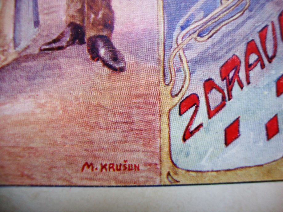 Krasna kolekcionarska umjetnička dopisnica M.Krušlin - putovala očuvana u skladu s vremenskom starošću