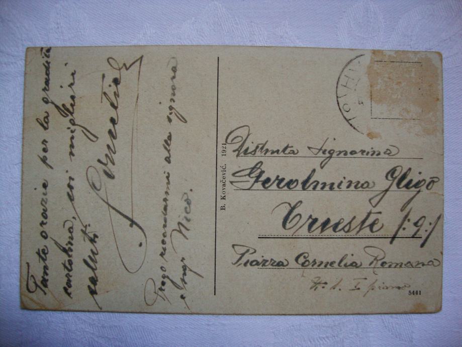 Izdavač B. Kovačević - 1921. god - putovala za Trst - stanje izvrsno !