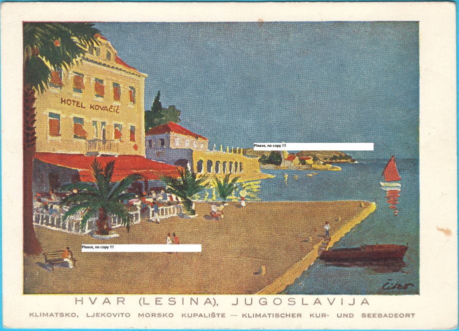 HVAR - Hotel Kovačić ... predratna Art-Deco razglednica iz 1930-tih