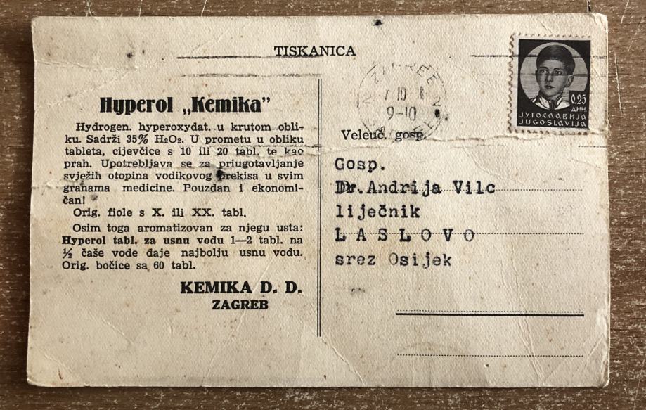 HYPEROL - STARA REKLAMNA RAZGLEDNICA IZ 30tih GODINA 20. STOLJEĆA