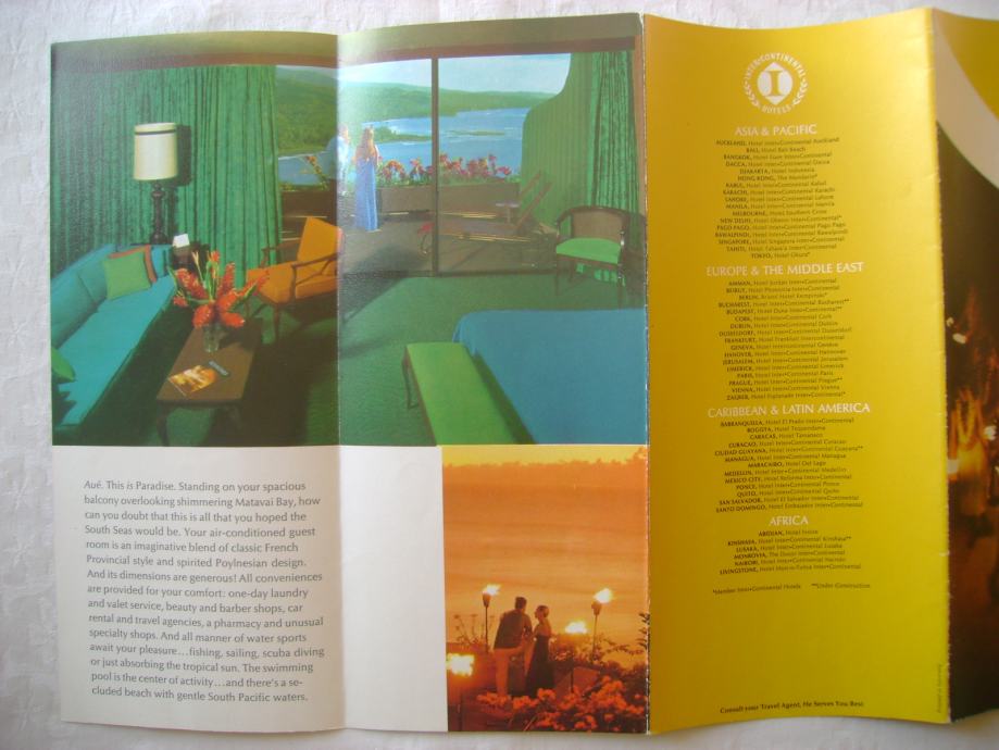 Inter-Continental Hotel Tahara'a, Tahiti - stari hotelski turistički prospekt, vjerojatno iz 70-ih, stanje je vidljivo na slikama.