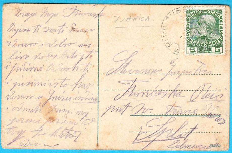 Vrlo lijepa stara austro-ugarska razglednica Ivanice (selo na granici Dalmacije i Bosne i Hercegovine), putovala oko 1910-te godine.