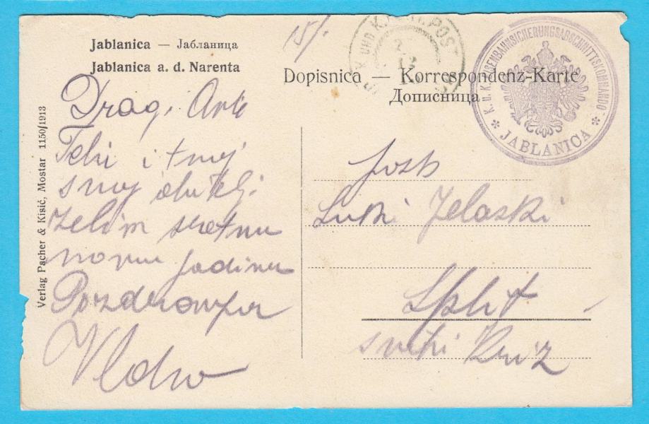 JABLANICA (Bosnia i Hercegovina) Žig Austro-Ugarske vojske u Jablanici
