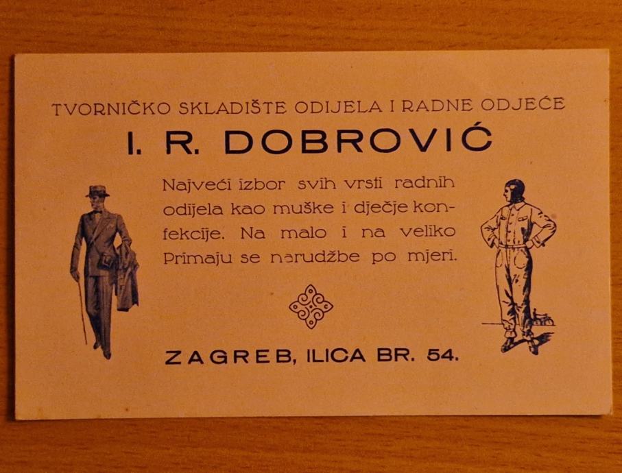 Jako Stara karton reklama I.R. Dubrović Odjela i Radna odjeća Zagreb