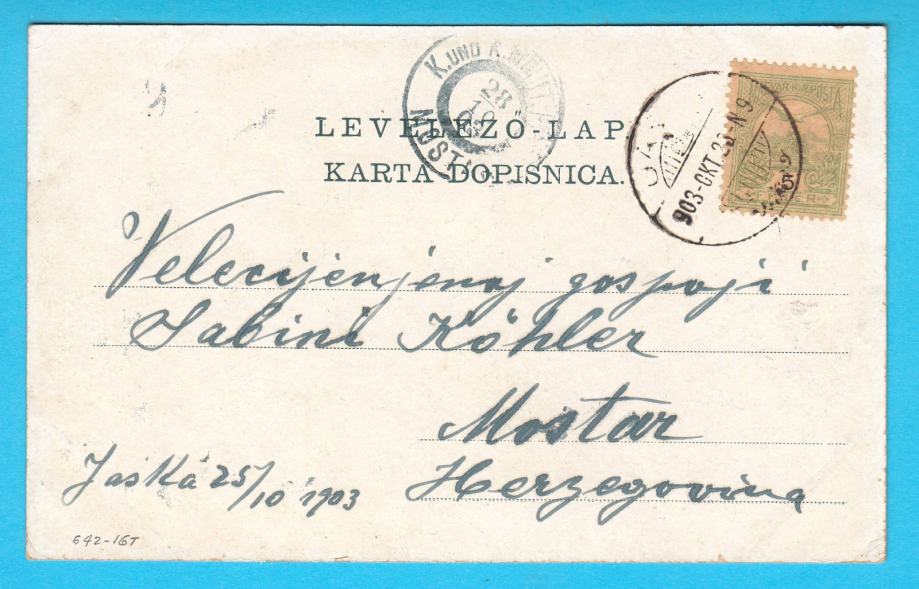 Prekrasna stara razglednica (litografija) Jaske, putovala davne 1903. godine.