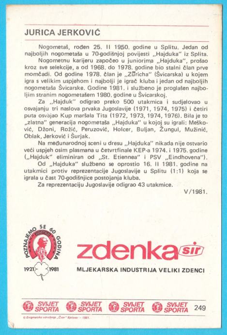 Ovo je stara vrlo lijepa sportska kartica iz bivše Jugoslavije, izlazila 1980-1981.